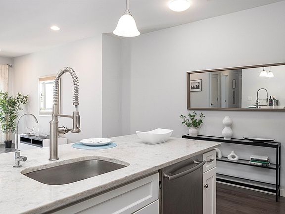 Welcome to Palisades Heights! Built in 2016 in the most desirable east side Jersey City Heights location, offering elevator service, premier onsite parking, large common backyard, and in close proximity to local hot spots, restaurants, shops, parks, public transportation and highways. This is the largest 1156 sq ft layout 2 bed 2 bath on the top floor, capturing sweeping views of the NYC Skyline. Spacious and modern penthouse interior boast hardwood floors, central air con, in unit washer dryer, Juliet balcony, video intercom, recessed lighting, and industrial-style light fixtures. The kitchen features quartz countertops, farm house sink, JennAir stainless steel appliances, subway-tile backsplash, and industrial pendant lighting over breakfast bar. Your new home awaits.