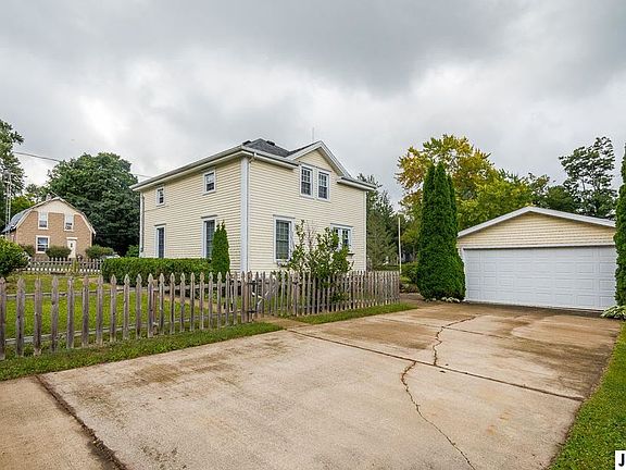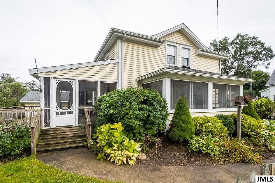 Beautiful farmhouse on picturesque corner lot in Rives Junction! Amazing landscaping welcomes you inside the fence to a charming floor plan. Incredible restored woodwork throughout the entire house, including custom built cabinetry in the kitchen and vanity in the full bath. The spacious lower level has formal dining, large living room and half bath. Upstairs hosts both bedrooms, one much larger than you'd expect! Enclosed front porch could easily be made to a 4 seasons room, while a pleasant screened in back porch lets you settle in and enjoy the scenery. All atop a full basement with plenty of storage and updated mechanics. You'll fall in love with this meticulously cared for and completely restored home!