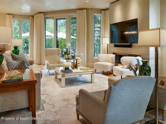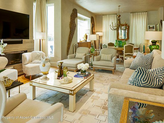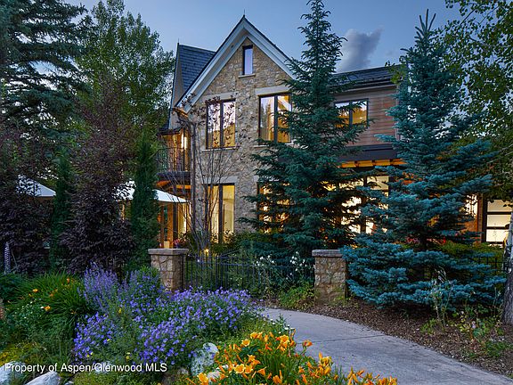 Elegant Provençal design in the heart of Aspen. Located on a corner lot adjacent to the Hopkins pedestrian bridge for instant access to downtown, the home was recently completely remodeled by Charles Cunniffe Architects and Jan Showers Design. The main level is bright and open, with a chef's kitchen, dining and formal living room for entertaining that walks out to a terrace with lounge seating and a hot tub that faces Aspen Mountain. The primary suite occupies the entire upper level, a private sanctuary with a sitting room, fireplace, spa-like bath and an oversized dressing room closet. Family and guests are treated to three generous bedroom suites with accompanying baths that each include dual vanities, rich stone and high end finishes.The ultimate media and billiards lounge downstairs boasts an expansive wet bar with wine storage. The home also includes an elevator, oversized 2 car garage and attached mud room with ample built-ins for gear and storage. The ultimate media and billiards lounge downstairs boasts an expansive wet bar with wine storage. The home also includes an elevator, oversized 2 car garage and attached mud room with ample built-ins for gear and storage.