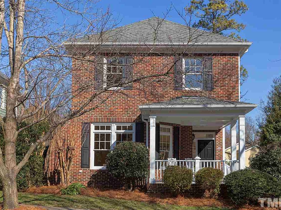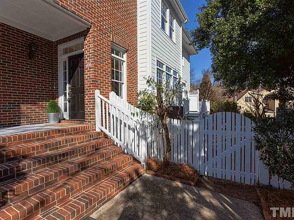 This dwelling dynamo greets with a picture-perfect porch. A brownstone beauty with banks of windows, light-filled flex spaces make a mighty impression. Strength of character includes hardwood floors, marble fireplace, stylish lighting, cherry cabinets, stainless appliances + tile baths. The hub of the house -- the kitchen + family -- flows onto the commanding courtyard with brick patio + pierced-brick wall. The rest is easy in spacious bedrooms with workhorse closets. This smart knock-out is well-built!