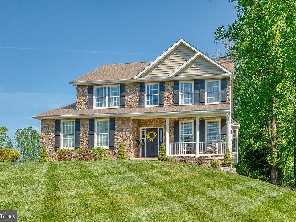 Welcome to 302 Patterson Mill Road, in the sought-after Vine Hill Estates Community, of Bel Air. This stone front colonial is situated on a premium 1+ acre lot, backing to trees and a stream. The exterior features a two-tier wrap around maintenance-free deck with built-in hot tub and lights. You'll find a custom bluestone patio with firepit as well. This yard accommodates a pool and has public water and sewer. No details were spared inside or outside in this beautiful smart home. You'll find 9-foot ceilings, surround sound and whole house audio with speakers inside and outside the home, and even zoned geothermal heating and cooling for energy saving benefits (2021). The eat-in kitchen has 42-inch cabinets, granite counters with center island/breakfast bar, backsplash and stainless steel appliances. It's open to the family room with built-in shelves, stone surround fireplace and recessed lights. A private office is tucked away with luxury vinyl plank flooring, in addition to the dining room with bay window and moldings, and living room with pellet stove. The laundry is situated on the main level for added convenience (washer/dryer - 2022). New luxury vinyl plank flooring leads to the upper level landing and can be found in the bedrooms as well. Each room has overhead lighting/fans, crown molding with large closet space with lights. The primary suite has two walk-in closets, cathedral ceiling, moldings and french door entry. The primary bathroom has double sinks, soaking tub and separate shower with dual heads. The walkout lower level is also finished with another full bathroom with shower with dual heads, rec room and ample storage. Other extras include 2- 200 Amp Panels; ethernet and coax run to all rooms; dual water heaters; extra storage shed; and under deck storage. You must see to appreciate all of the unique features.