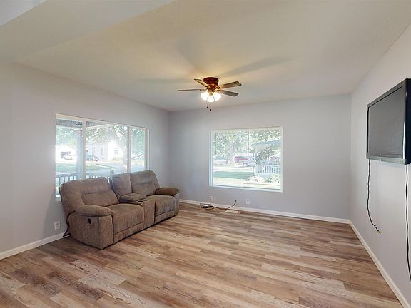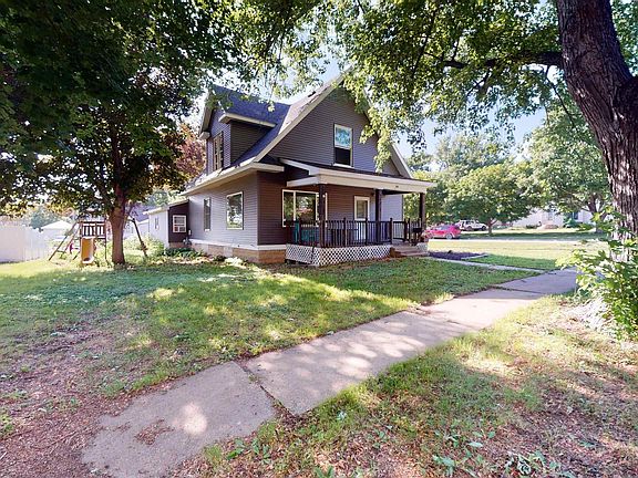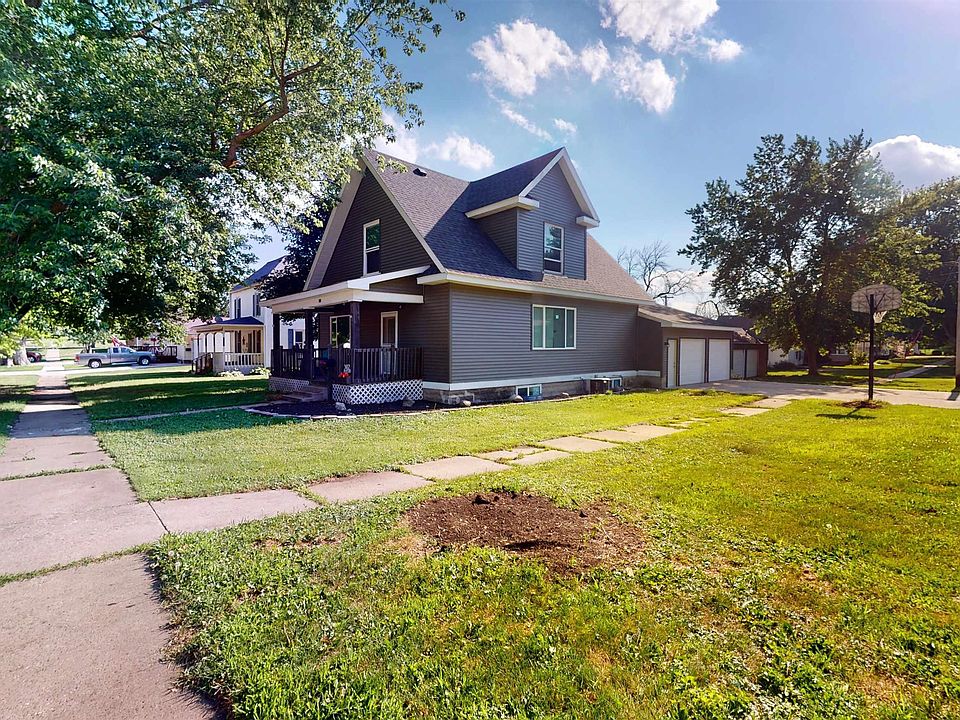302 Peterson St in Alta is a large, renovated home with an inviting open front porch. There is a 2 car oversized attached garage and a 2 car detached garage that would make a great workshop or whatever you need. The main level has an open floor plan between the kitchen and dining room. The living room will accommodate a large get together. The AC and central heat are on the main level only. Second level has electric heat and no AC The laundry is on the main floor along with a spacious bedroom and a full bath. The kitchen connects directly to the extra large attached garage for ease of unloading and bringing in groceries. This garage has space for storing motorcycles, Lawn mower, or to have a workshop. Upstairs has 3 additional bedrooms and a large shower bath. The basement also has finish that could be used for a large get together room.There are so many updates to this home that they can't all be listed here but they include, roof, new gutters and downspouts coming, siding, windows, central heat and air, garage doors, flooring, bathrooms, kitchen, basement finish, and the electrical panel.