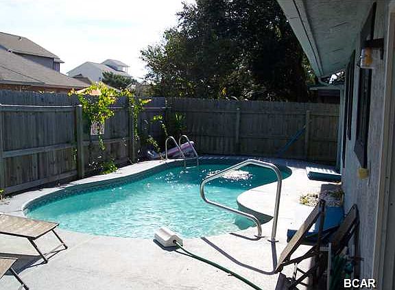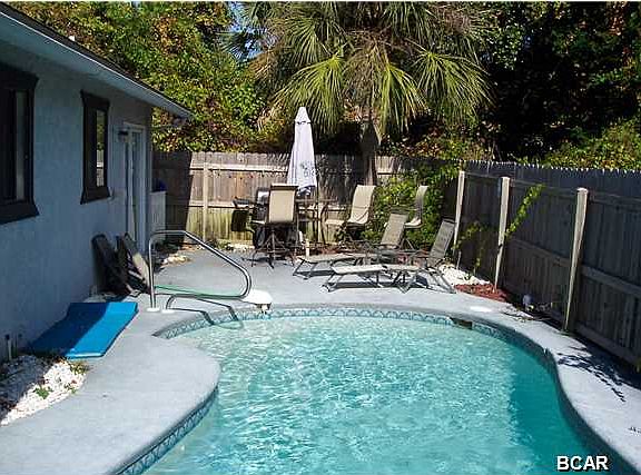 SELLER WANTS TO GET THIS HOUSE SOLD PRICE CHANGE FROM 234K TO 219K---Wonderful 3 bed 2 bath Beach home with POOL. Inside is mostly tile with carpet in the bedrooms. .Granite counters in the kitchen with stainless appliances and upgraded faucets.Plenty of room to enjoy with a dining area...Living room PLUS a huge den to boot. Outside there is a 12x24 pool and even a golf cart garage.The yard is well kept with a sprinkler system.Around the pool is all Concrete deck so NO yard maintenance.All of this and still only 4 blocks to your very own Private Entrance to Bid a Wee Private Beach.Sugar white sand and beautiful Blue surf.Take a stroll and let your worries slip away ! Call for your appointment to see this gem today-----.Furniture included (Except Dining Room Table and Chairs ,DINING ROOM MIRROR AND PERSONAL ITEMS AND SOME DECOR)(all sizes approximate, Please measure if important) Here is the changes and upgrades as per the owner. Pool resurfaced in 2009-Pump,light wiring and filter in 2011---outside and inside of house painted in 2010 new kitchen counters, cabinets and appliances in 2010-HAVC replaced in 2011, New water heater in 2011.