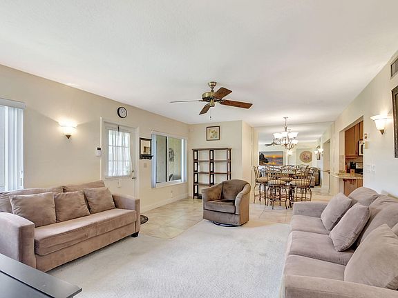 Experience unparalleled resort-style living and value in this meticulously renovated 2 bedroom, 1 and a half bathroom 2nd floor unit where even the furniture is included! Tasteful design features include masterful floor to ceiling tile work in the bathrooms, custom wood cabinetry, walk in custom closets in both bedrooms, granite countertops, recess lighting & knock down ceiling texture. For added safety and convenience all windows & siding doors have been replaced with Impact glass & the electrical panel has also recently been upgraded. The home comes fully equipped with a SimpliSafe alarm system, complete with two safe cameras and a motion detector, providing an added layer of security & surveillance. Additionally, embrace modern convenience with the state-of-the-art energy-efficient Nest thermostat, optimizing comfort while reducing energy consumption. Pine Ridge III is a welcoming active adult 55+ community offering residences abundant activities including resort style recently refinished swimming pool, Tennis Courts, Shuffleboard, Bocce, Pickleball, Clubhouse w/On-Site Manger and several picturesque grounds for walking, jogging and enjoying the South Florida lifestyle!
