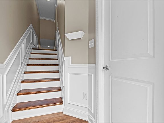 Welcome to this gorgeous townhome located in the wonderful, gated community of Adams Pointe. This meticulously maintained home features a fabulous floor plan with a rare 4-foot extension to the kitchen, bedroom and primary suite. The gourmet kitchen opens to the dining area and leads to a private deck making it the perfect place to entertain. The spacious living room is enhanced by beautiful hardwood floors, crown molding and wainscoting throughout. Upstairs, the primary suite offers a tray ceiling, walk in closet, and spacious bathroom with a double vanity, soaking tub, and separate shower. The laundry room on the 2nd floor adds convenience, and the rear facing 2 car garage offers private, secure parking. Enjoy resort style amenities just a short walk away-including 2 pools, a gym, indoor basketball court, movie theatre, tanning salon, car wash, clubhouse and so much more! The perfect blend of comfort, style and community living!!!