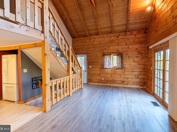 Full-time living or weekend retreat, this log home offers the best of both worlds. Perfectly nestled on a serene 1-acre wooded lot, it’s a nature lover’s dream. Located moments from PA State Game Lands #255 (231 acres) & just 14 miles from the Southern Trailhead in Orviston leading to the Bloody Skillet ATV Trail, it’s a haven for outdoor enthusiasts. Enjoy peaceful views across from Bald Eagle Creek & easy access to Bald Eagle State Park & Foster Joseph Sayers Lake, only 6 miles away. Inside, you’ll love the sun-filled, open-concept design featuring a spacious great room with a tongue-and-groove vaulted ceiling that extends to the second floor, plus a cozy fireplace. French doors lead to a wraparound deck, seamlessly connecting indoor & outdoor living. The kitchen offers solid wood cabinetry, included appliances & a functional island, while the charming dining area opens to the deck via sliding glass doors. The main level includes a bedroom & full bath. Upstairs, discover a cozy loft overlooking the great room & an owner’s suite with cathedral ceilings, skylights, French doors to a private balcony & a full bath with a relaxing corner jetted tub. The finished walk-out lower level provides flexible living space for family & guests, including a rec room with a toasty stove (perfect for brisk Pennsylvania winters), a home office, guest room, full bath & utility room with laundry (washer & dryer included). An oversized detached garage offers ideal storage for side-by-sides & outdoor gear. Located just 9 miles from Mill Hall, 12 miles from Lock Haven University, 19 miles from Bellefonte & 30 miles from Penn State University, this property delivers summit serenity with everyday convenience. If you’ve been searching for the perfect blend of privacy & adventure at your fingertips, this is your ultimate opportunity. Property is being SOLD AS-IS. This property is a part of the Eagles Nest Forest Wilderness Club but does NOT pay the yearly HOA fee.