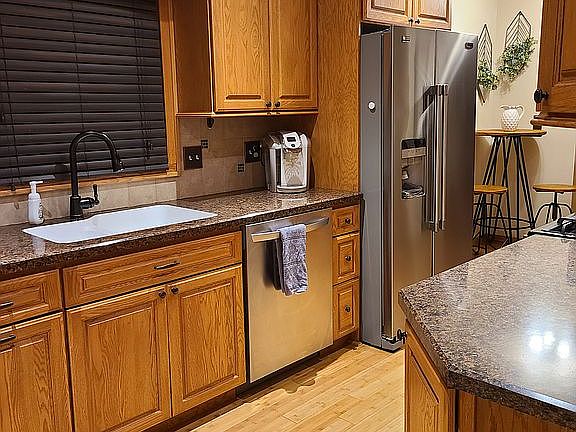 Welcome Home! Located on a large corner lot, this home is close to the school, park, pool, and ball fields. Walking in, you will enter the beautiful dining room, with a gorgeous large window, and original hardwood floors. The dining room flows into the galley kitchen with custom, soft close, Oak cabinetry, stainless steel appliances and laminate counter tops. The kitchen also features a gas range, with a new microwave and fridge/freezer in 2020. A large spacious laundry room/mud room is right off the 2 car garage entry. This garage is heated and insulated with attic access to ample storage. The corner gas fireplace adds the perfect touch in the large family room, that leads you to the back patio. Enjoy the firepit, garden, and vast yard from the back patio that includes underground sprinklers and a storage shed. This home offers two bedrooms and 1 bath on the main floor with one non-conforming bedroom downstairs. The unfinished basement is the perfect opportunity to make it your own with plumbing and hook ups for an additional bathroom. ***New windows, front door, and front shudders are scheduled to be installed in September 2021.