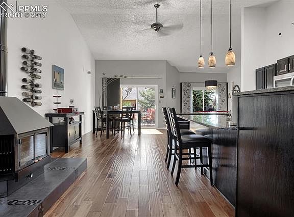 Incredibly modern fully updated townhouse is ready for you. Desirable layout in a desirable location and complex in Monument. Flexible room uses and open main level layout. Private larger deck and private covered lower patio area are just some of the perks. Attached 2 car garage is a step away from your home. Walk into the spacious living room which is open to the kitchen, nook and dining room. Easy to care for main level hardwood flooring throughout. A kitchen you'll love to cook in boasts beautiful granite counters, stainless appliances, modern back splash, new sink, faucet and bar seating. Current nook area could be dining area or a reading area. Current pool table area could be dining area, formal living area, reading area or whatever you need. Convenient and totally new half bath. Deck has been enlarged from original and has a storage closet. Nice wood stove for those cold winter nights on a raised modern tile base. Both bedrooms in the basement have their own patio door to a private area. Master bedroom has a walk in closet and totally all new bathroom you'll love to get ready in with a large shower and double vanity. 2nd bedroom also it's own totally all new bathroom. Office area in the basement could be used as office or storage. The large laundry room has a storage area under the stairs. The garage loft storage area keeps all your extra stuff in 1 place, garage also has storage cabinets and workbench area. Many touches you won't notice like all solid interior doors, framing of the deck 12" on center instead of 16", new furnace and water heater in 2015, new vinyl windows are triple paned, new vinyl patio doors are double paned. Monument lake and mountain views are an easy walk away from your home. Community garden is a bonus.