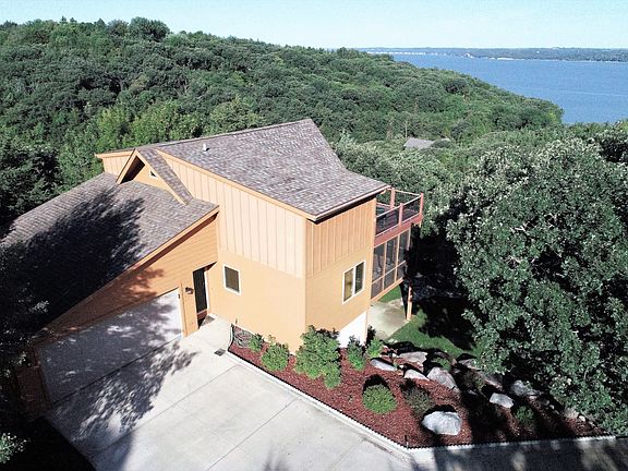 Water View Lewis & Clark Lake property located in the highly desirable Hideaway Acres, on the Nebraska side! This very comfortable 4 bedroom, 3 bath lake home is situated in a private setting on nearly 2 acres. Convenient, attached/finished 2-vehicle garage enters into the ground-level main floor. On the main floor is the kitchen, dining, 1 of 4 bedrooms, 1 of 3 bathrooms, screened-in porch and living room area complete with a gas fireplace! In the upper level is the master bedroom en suite, which accesses a deck, and one additional bedroom. The walk-out basement has a large family room, bedroom, bathroom, laundry & mechanical room. Radon system installed in 2020. Complete with plenty of concrete parking area. This property is a great spot for indoor & outdoor enjoyment!