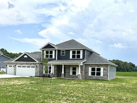 Welcome to Kiracofe Homes Raul lll model! This floor plan offers over 2800 sq ft and is situated on almost 1/2 acre lot in Bowen Acres. The Raul lll is a four bedroom 2 1/2 bath home with a den, dining room, nook separating the open floor plan from the great room and kitchen as well as a large 13 x 15 loft for additional space upstairs. The master bedroom is on the main floor and includes tray ceiling and oversized walk-in closet. In the master bathroom, there’s a large walk-in tile shower dual vanity sinks in a generous sized linen closet. The kitchen on this model has custom cabinetry with soft, close drawers, kitchen island with raised bar, large pantry, solid surface countertops, and is finished with a stainless steel appliance package other features on this home includes upgraded, trim, cased windows, and built-in lockers just to name a few. This Darling is even a USDA eligible area! Builder Incentive: builder to give $2000 credit to buyer for options from August 1st 2023 to September 30th 2023.