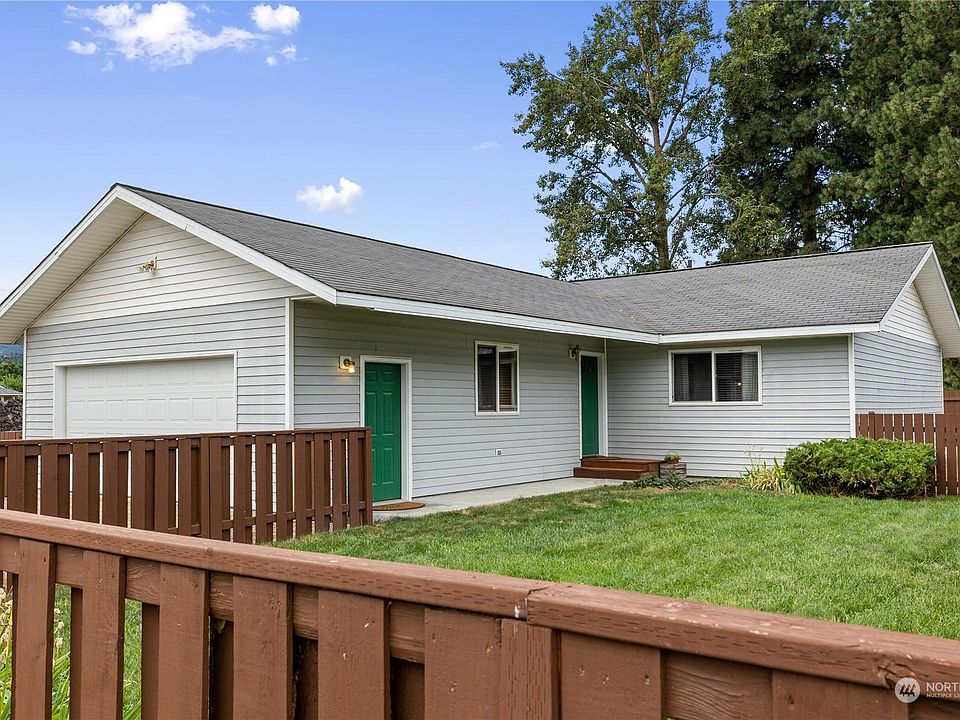 Interest rates keeping you from buying? Let's talk! Seller is willing to help! Come see this move in ready rambler on 2 1/2 city lots in South Cle Elum. Open kitchen with oak cabinets. Three good size bedrooms with large closets. The primary bedroom has 3/4 bath ensuite. Linen closets and hallway closet for coats. Two car garage with laundry area and storage. 220 outlet available. Propane heater in hallway. Yard is fenced and ready for your furry family members. Conveniently located a short distance to amenities, restaurants and John Wayne trail.