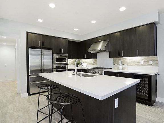 Extremely upgraded town home in the highly sought-after community of Central Park West. This turnkey Residence 1 Manhattan end unit is situated overlooking the brand new Jr. Olympic swimming pool, wading pool, and Rockefeller Park. The energy efficient smart home includes a Ring Video Security Doorbell, Nest Learning Thermostat, Chamberlain MyQ WiFi-enabled Smart Garage opener, and tankless water heater among many other upgrades. Included with the home is the home entertainment system including a 65" Samsung 4k SUHD TV, two TVs built inside the master bathroom mirrors, custom built-in speakers, and more. Enjoy custom electronic shades and cabinetry along with high-end stainless steel appliances, built-in wine fridge, Corian counter tops, Travertine floors & recessed lighting. This 3 bedroom 3 bathroom home features approximately 1,832 square feet of living space and an abundance of natural light throughout the day. Relax outside on the wraparound terrace and relish the city skyline. The 2 car garage with direct access has plenty of cabinets for storage, and epoxy flooring. The state of the art 8,000-square-foot Clubhouse and Recreation Pavilion provide a fitness center, multi-purpose entertaining terrace, newly refinished resort-style Jr. Olympic saline pool with 4 lap lanes, barbecue pavilion, and more. Centrally located minutes away from beaches, airport, and great shopping at South Coast Plaza, Fashion Island, and Irvine Spectrum.