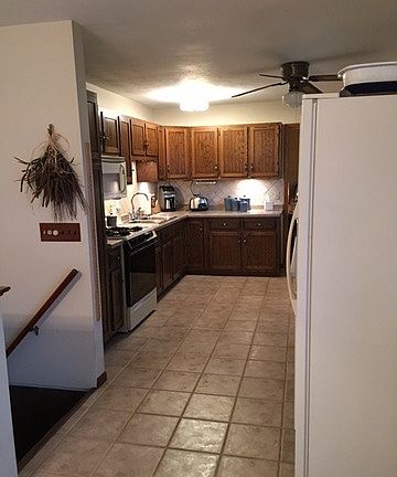Well cared for home on quiet street close to school. Home offers spacious kitchen & family room, 2 full baths, ceramic tile, hardwood & laminate floors, three bedrooms, partially finished basement with large rec room and laundry room. Rec room has striking stone fireplace with heatilator. All appliances stay including the chest freezer. HWA 13 month home warranty included. Also features 21 x 16 deck with hot tub overlooking big back yard, 2 & 1\2 car garage with gas line for heater if desired. Storage shed and water softener as-is. Homes shows very well and is easy to show.