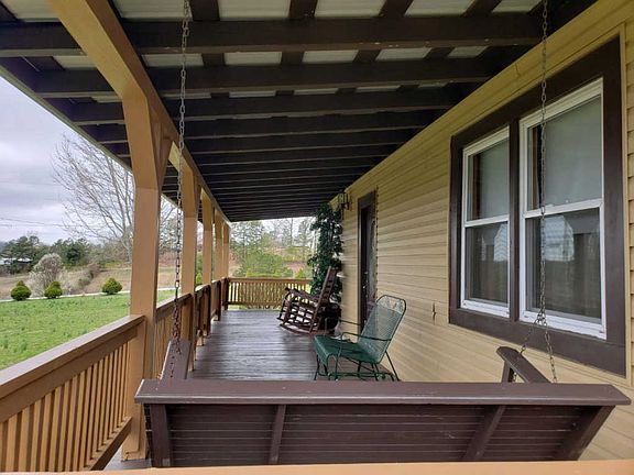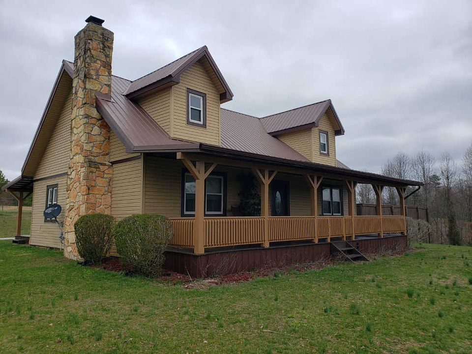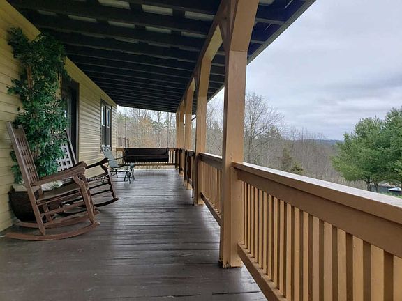 Beautiful log home now available near Natural Bridge. Per the rules, this is a two bedroom, but the large loft is currently used a third bedroom, and has a closet and bath alongside. Exterior vinyl siding; once inside the home you'll feel as though you're tucked away in the woods. Massive stone fireplace, long covered porches, metal roof, granite countertops, real hardwood floors, above ground pool with enclosed decking, hickory cabinetry...this beauty has it all. Seller has also added a detached 2 car garage. Super well maintained, very cozy, and high end finishes.