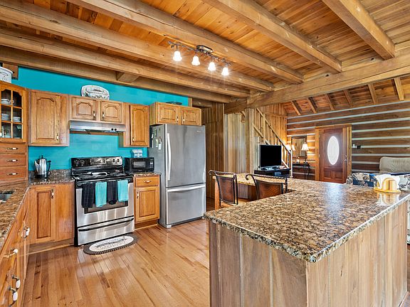 Nestled just off the Mountain Parkway, this stunning log cabin is a rare gem—ideal for short-term rentals or a charming residence. With 2 traditional bedrooms, a loft-style bedroom, and 2 full baths, this home boasts gleaming hardwood floors, a kitchen with solid hickory cabinets and granite countertops, and a breathtaking stone gas fireplace. Enjoy the 30x30 above-ground pool with a private gated deck or unwind on one of two large porches, soaking in serene Kentucky views. Situated on a well-manicured 1.4-acre lot, the property features a two-bay garage with concrete floors and electricity, ample parking, and pristine landscaping. Upgrades include a metal roof, encapsulated crawlspace, updated windows, continuous pest prevention, custom wood blinds, and an inline water heater. Located just 65 miles from Lexington and 10 miles from Red River Gorge, this cabin offers the perfect blend of outdoor adventure and comfort. Don't miss your chance to own this versatile property!