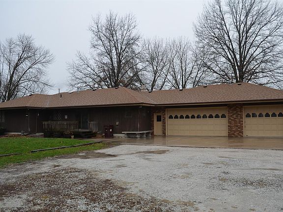 PRICE REDUCED! Great location for this massive brick ranch located in town on 3 acres m/l. Large, beautiful yard with mature trees and landscaping adorn this timeless brick ranch home. Flat lot on the NE side of the property offers a great building site for a new shop. There is a 3 car attached garage, as well as a 3 car detached shop with one stall having concrete floor. The home offers a large open concept kitchen/dining/living area, with great views, and a brick wood-burning fireplace. With 9 possible bedrooms (5 on the main floor) this is an exceptional opportunity for a large family. Master suite with walk-in closet. In the basement you will find more opportunity with a full kitchen, family, and game room. 3-car attached heated garage. Call today for more info and a showing.