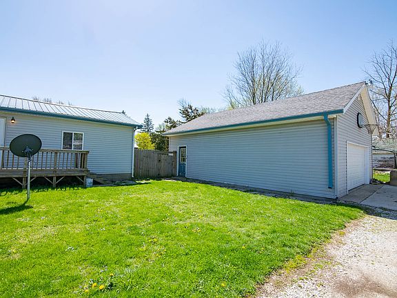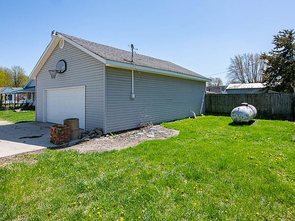 Check out this small town charmer! Home and 2 story garage sit on double corner lot, privacy fenced back yard and a front porch built for summer evenings sipping your favorite beverage. Seller has completed a few large projects like adding solar panels, a whole house Culligan water system and New furnace/AC units in 2021. There are still cosmetic finishes to be completed so bring your ideas and make this one your own.