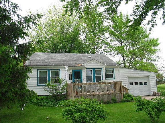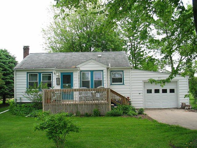 Charming, 2 bedroom, 1 bath ranch style home located on a very nice 100' X 140' lot. The large front deck welcomes you into an enclosed porch leading to the living room boasting beautiful hardwood flooring. Arched doorways add to the character. Combined kitchen and dining increases functionality. Newer double pane windows throughout. Fresh kitchen paint. Radon mitigation system has been installed. Mature trees. Rear patio for entertaining. Attached one stall garage.
