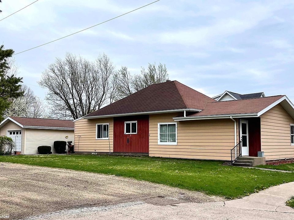 Come see this quaint home in the up and coming town of Mediapolis. This bungalow features 2 bedrooms with another non-conforming bedroom all on one level. The open concept kitchen/dining room is conveniently located off the back mudroom/laundry area next to the garage. The garage features an enclosed patio/lanai with many windows. This a perfect place to sip coffee in the morning or wind down your day with neighborly conversation. (#mancave/she shed) Windows in the attached enclosed patio were damaged in the recent storm and will be fixed. Other than repair of the windows, home is being sold "as is." Hardwood floors grace the living room and low maintenance pretty landscape dress up the outside of the home. This is a well maintained home in a friendly small town (just 15 minutes north of Burlington.) Schedule your showing today!
