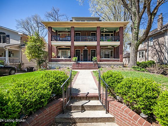 Welcome to a Crescent Hill condo that offers a unique blend of historic charm and modern amenities in a convenient location that can't be beat. Just one block from the Frankfort Avenue shopping and restaurant scene and nestled across the street from the historic Peterson-Dumesnil House, this first-floor unit in a 100-plus-year-old building greets you with a large covered front porch, perfect for enjoying the view of the park-like location that hosts special Crescent Hill neighborhood activities, including the popular Old-Fashioned 4th of July Festival, Art Fair, and Fireworks. Inside, the formal dining room greets you with natural light streaming through large windows, highlighting the original fireplace that adds character to the space. The charm continues with original pocket doors leading to a bedroom currently being used as a living room, showcasing the versatility of the floor plan. Down the hall, you'll discover the primary bedroom with two closets, one of which is a walk-in. The attached bath with clawfoot tub provides convenience and privacy. A second full bath was renovated in 2023 with a walk-in rain shower. Continuing your journey, you'll find the laundry closet/pantry featuring a new stackable GE washer and dryer. The highlight of the home, however, lies in the gorgeous gourmet kitchen and cozy hearth room with a gas fireplace and TV shelf, creating the perfect space for cooking, dining and relaxation. Modern appliances including a newer Bosch dishwasher and LG refrigerator, along with sleek finishes complement the historical elements, offering a harmonious blend of old and new. Off the kitchen, an elevated deck beckons you to enjoy al fresco dining or simply unwind as you spot deer, hawks, and the downy woodpecker that you'll often hear, but rarely see. Two parking spaces are allotted for your condo, one of which is in the attached covered parking. Accessed from the garage, the unfinished basement boasts an assigned secure storage area, along with a large shared space as well.