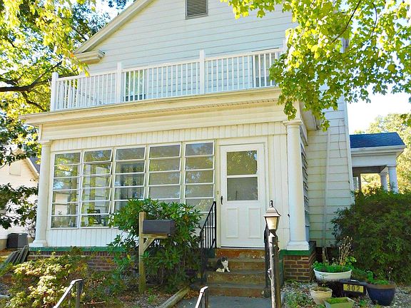 If you like the charm of the older home, this could be the one for you. You will see that most all of the original woodwork has been preserved...as when you walk through the front door, you see the original wood stairway. There are 2 sets of French doors, and the living room has a wood burning fireplace. Right off the living room is a 3 season glassed in porch. You will find that most of the wood floors are original, with those on the first floor recently refinished. The kitchen has an area that could be used as a storage pantry for goods. All of the bedrooms are on the 2nd floor. Two of the bedrooms allow access to balconies-with newer rubber roofs installed. In one of the bedrooms, there is a 8.3x 6.7 that perhaps had been a dressing area. Each level of the home has a bathroom. The basement is primarily unfinished and used for storage. Roof was replaced in 2012 and the AC Compressor in 2014.