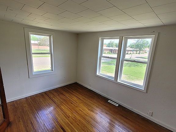 Great location, 2/3 bedroom 1 bathroom home right across the street from the schools. Good sized eat in kitchen, bonus room that could be used as a 3rd bedroom. Many new updates, new roof, new electrical service, breaker box and all new breakers, new tile throughout, fully renovated bathroom, new hot water heater and all new water lines all in 2018. New energy efficient windows, insulation, and siding in 2020. Home has central air and furnace is less than 10 years old. Large main level laundry room with plenty of storage. Home has a metal 10'X12' shed that stays with the property.