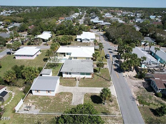 Very unique opportunity to own your own beach house on the quiet West End PCB with GULF VIEWS! Primary residence or second home gives the owner a chance to really immerse themselves into a wonderful community and enjoy a true beach lifestyle without having to deal with short term rentals as the city has restricted this area for that use. This block home has 2 BR and 2 BA ON A DOUBLE LOT and is positioned 1000 feet from the beautiful Gulf of Mexico. Stroll to the beach in two minutes and separate yourself from the crowd. No HOA allows the owner to take advantage of the property and have plenty of room for storage and vehicles. 24'x24' garage and a 10'x10' block building on the property. Endless possibilities with this property. Two story build would give the owner unobstructed Gulf views.