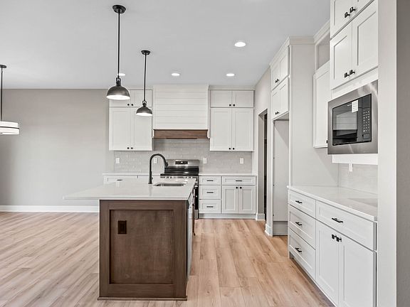 Welcome to a home where thoughtful design and quality craftsmanship create a space that truly feels like home. Built by Behr Construction known for lasting value and functional floor plans, this residence blends timeless style with modern comfort. The open-concept main level greets you with tall ceilings, natural light, and a seamless flow ideal for everyday living or entertaining. At the heart of the home, the chef-inspired kitchen features tall, soft-close cabinetry, full-extension drawers, a spacious island perfect for gathering, and a generous walk-in pantry to keep everything organized and within reach. With over 1,650 sqft on the main level and an additional 1,000 sqft of beautifully finished space below, there's room to grow through every stage of life. The layout includes 2 bedrooms and 2 baths on the main floor, including a relaxing primary suite, plus 2 bedrooms and a full bath downstairs, ideal for guests, kids, or a home office. The finished lower level adds a wet bar and open space for connection or entertainment. Located within walking distance of Prairie Trail's parks, schools, pickleball courts, trails, and The District, this home offers more than exceptional design it delivers a lifestyle of convenience, community, and comfort. Every detail reflects Behr's commitment to making life feel right at home.