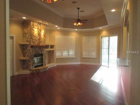 Remarkable 4 bedroom home located on 9 acres in Lutz. This property is tucked in a small neighborhood of COOPERS BAYOU. This custom built home consists of tall ceilings, architectual niches throughout, plantation shutters, wood floors downstairs, crown molding, tray ceilings, custom kitchen cabinetry, and more. The back patio is screened in and wraps around the exterior of the home overlooking the conservation. Double sided fireplace in the master bedroom and living room downstairs, 2 additional bedrooms upstairs, and 4th bedroom downstairs could also be used as a office. This property is eligible under the Freddie Mac First Look Initiative through 03/21/2016