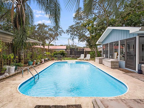 Welcome to this STUNNING remodeled 3 bed, 2 bath POOL home located just seconds away from the river and boat ramp. Situated on a high and dry corner lot in a no-flood zone in a NO HOA OR CDD neighborhood. Step inside to discover NEW vinyl floors throughout, NEW light fixtures, and NEW appliances. The ENTIRE home has been freshly painted from top to bottom, inside and out. With a roof replacement in 2021 and a house plumbing replacement in 2019, this home is ready for worry-free living. Additional updates include a newer hot water heater, pool pump, and garbage disposal. This home also has a BONUS sunroom/office (not included in sq ft)w/a serene VIEW looking out over the POOL! Don't miss the opportunity to make this home! SELLERS WILL PROVIDE A 1 YR HOME WARRANTY W/ACCEPTABLE OFFER