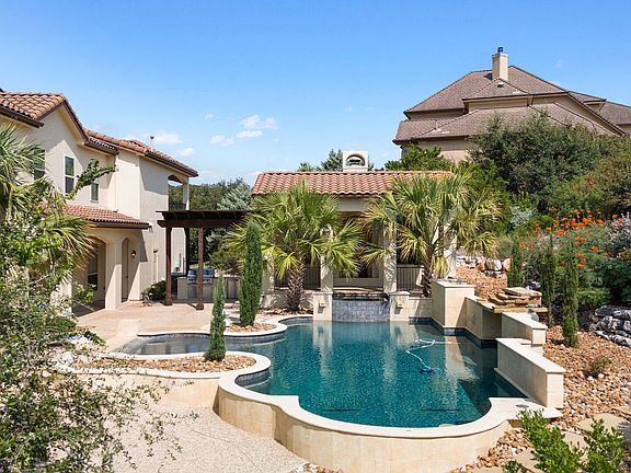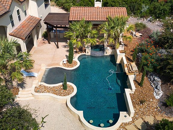 Entertainers Dream with pool on over 2 acres! Nestled in a serene neighborhood, this exquisite 5-bedroom, 4 1/2 bath pool home boasts an impressive nearly 5000 sq ft of living space, providing ample room for both relaxation and entertainment. Upon entry, you're greeted by an abundance of natural light that floods through the open layout, highlighting the meticulous attention to detail in every corner. The spacious living areas offer versatility, perfect for cozy family gatherings or hosting lavish soirees. The heart of the home is undoubtedly the beautiful kitchen, equipped with top-of-the-line appliances, granite countertops, double ovens gas cooktop and ample cabinet space. Dual master bedrooms on first floor plus a private study and family room with 2 story stone fireplace! Upstairs boats 3 bedrooms and 2 complete bathrooms, game and media rooms with wet bar and separate walkout balcony with secluded view enjoyment! Retreat to the luxurious primary suite, featuring a private sanctuary with a spa-like ensuite bathroom, stunning views and your own entrance to the backyard complex! Step outside to your own private paradise, where a custom Keith Zars heated pool complete with grotto water fall hot tub awaits, surrounded by landscaping and a generous cabana area covered area with fireplace outdoor kitchen and cabana bath area ideal for alfresco dining and soaking up the sun. Sitting on over 2 acres there is a walking path to a second pergola area as well! This outdoor oasis offers the perfect backdrop for creating lasting memories with family and friends. Conveniently located near shops, restaurants, and recreational amenities, this home offers the ultimate blend of tranquility and convenience. Don't miss the opportunity to make this stunning pool home your own!