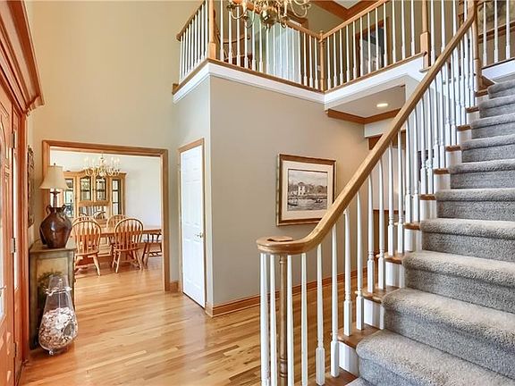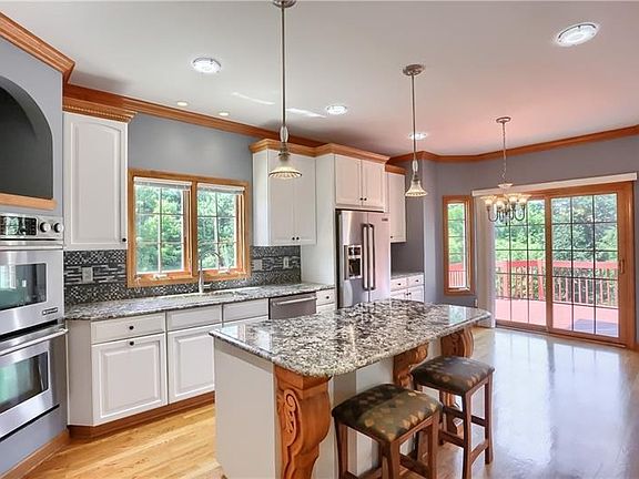 Brick & Hardie Board updated home w/soaring ceilings, crown, vivid windows & fresh neutral tones. Porch boasts freshly painted columns. Enter beveled glass door w/sidelights into 2-story foyer. Formal LR w/carpet. Bright DR w/HW leads to spacious pantry. Tiled laundry w/cabinetry. Modern cabinetry w/wood details, backsplash, granite, SS Jenn-Air & Wolf appliances, island w/storage & microwave drawer, casual seating, HW & EIK w/rear deck access are KIT highlights. FR w/recessed lights, vaulted ceiling, skylights, wood FP w/marble & wood details & flanking French doors to deck. Den w/French door, HW, built-ins, recessed lights & deck access. Double doors to master w/vaulted ceiling, arched window, his & her closets & spa BA w/his & her vanities, tile shower & Jacuzzi tub. 2 guest BR w/neutral carpet & large closets. 3rd guest BR w/HW, vaulted ceiling & ample closet. Walk out LL w/versatile space & full BA. Rear deck & private yard on acreage. Large custom shed included with sale.