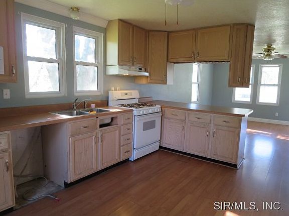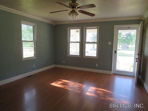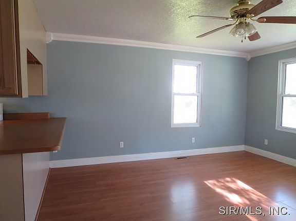 Property located in old Valmeyer was renovated after 1993. Updated cabinets, laminate flooring, bathroom and vinyl siding. Newer wood laminate floors in kitchen and living room shine! Ceiling fans in living room, kitchen and several bedrooms. Mature shade trees in yard and a detached garage too! Buyer to verify all information. Earnest money must be 3% of the purchase price or $1000, whichever is greater.