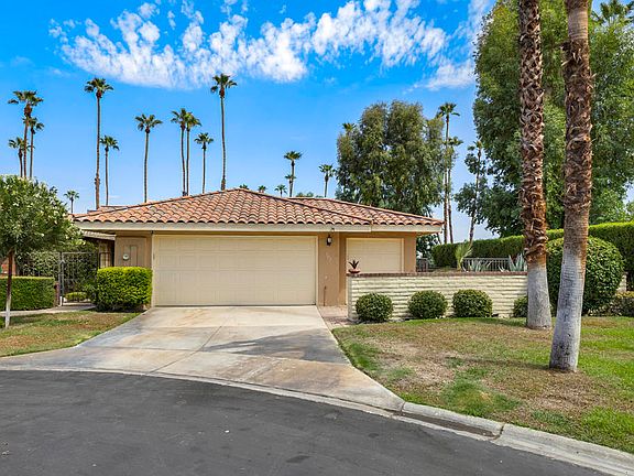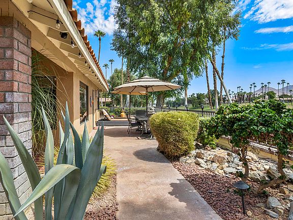 VIEWS! VIEWS! VIEWS!...SIDE YARDMarvelous Desert Homes is proud to present this stunning expanded 30 Plan with side yard located in one of the most desirable cul-de-sac settings in Monterey Country Club. This private south facing end-unit offers nearly 2,000 square feet of upgraded living space, highlighted by a rare custom elevated side yard with professional desert landscaping in both the front patio and side yard. It's truly one of the best side yard views and locations in the community, creating the perfect blend of indoor comfort and outdoor desert living.Inside, both the kitchen and dining room have been extended and open to a bright and open living room. The kitchen is a showplace with a large island, brand new double wall oven abundant counter space, and three bay windows that frame sweeping 180 degree views of the golf course and the Santa Rosa Mountains to the South. The spacious master suite includes two walk-in closets, while the third bedroom has been customized as a den with a built-in desk. Additional upgrades include dual-pane windows, two newer A/C units less than a year old, new double wall oven, new water heater, wine fridge and an epoxy-coated garage floor. A separate golf cart garage adds convenience for avid golfers who love easy access to the course. Golfers will appreciate the home's prime location overlooking double fairways to the East and the 7th fairway on the West course, while those who love an active lifestyle will enjoy all that Monterey Country Club has to offer.Monterey Country Club is known as the friendliest club in Palm Desert, offering 27 holes of Ted Robinson-designed golf and a vibrant social atmosphere. Pickleball players will love the 24 pickleball courts and one of the most active pickleball communities in the valley. The club also features bocce, tennis, a fitness center, and a lively clubhouse with year-round dining and events.Beyond the gates, the home is ideally situated just minutes from El Paseo, Palm Desert's ''Rodeo Drive,'' with world-class shopping, fine dining, and art galleries, hiking and theaters. This property is a perfect retreat for golfers, pickleball enthusiasts, and anyone seeking the best of desert living.This is a rare opportunity to own one of the most desirable homes in Monterey Country Club--combining space, style, and the ultimate Palm Desert lifestyle. Call now for your private showing.