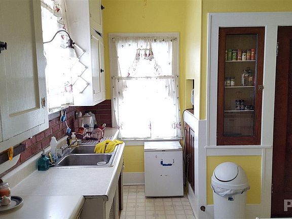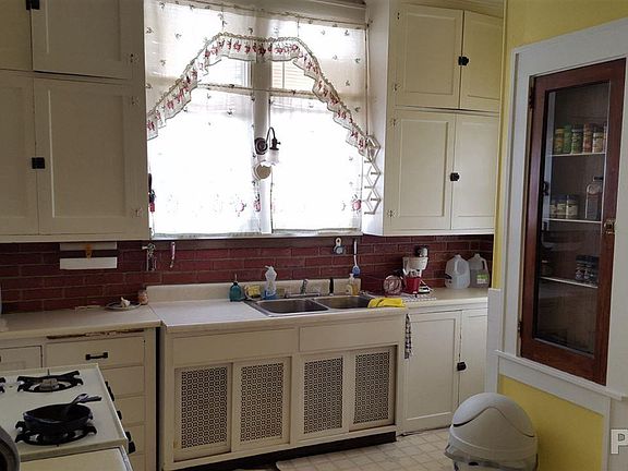 The main floor of this charming 1.5 story home features kitchen, informal dining nook with built-in benches, spacious formal dining room with gorgeous built-in china buffet and french doors leading to fireplaced living room with beamed ceiling & entry, master bedroom with dual closets, 2nd bedroom plus remodeled bathroom with jetted tub. The upper level hosts a family/rec room, 3rd bedroom, den/office and storage areas. Additional amenities include hardwood floors in majority of main floor, open front porch, covered patio, vinyl siding, detached garage and storage shed on a nice corner lot.