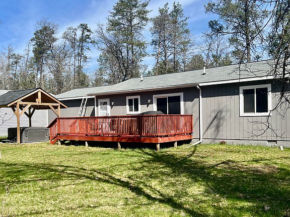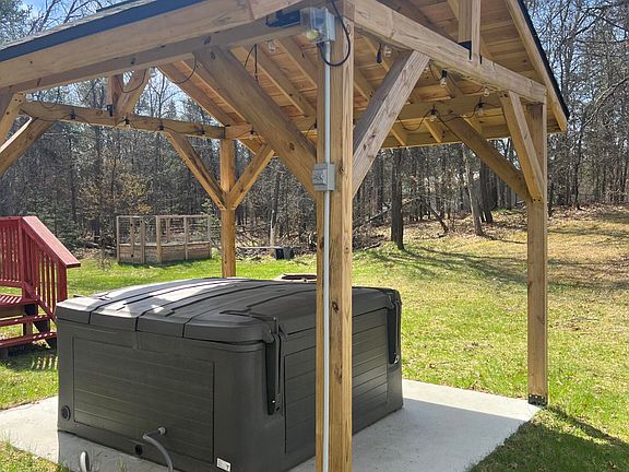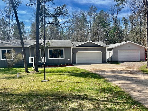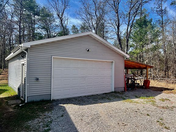 Secluded newer (2003) ranch has 2 B/R, 1.5 Bath, with an adjacent lot without visible neighbors. Bonus: 24x32 heated detached garage. Lovely great room with door wall off dining room leading to a huge (10x24) rear deck. Raised garden bed and a 10x12 gazebo with hot tub. Pellet stove heats home at approx. $500.00 per winter with a seperate pellet stove in detached garage. Insulated crawl space, generator hook up is in the attached garage. All appliances included! Master has a walk in closet with a full bath.