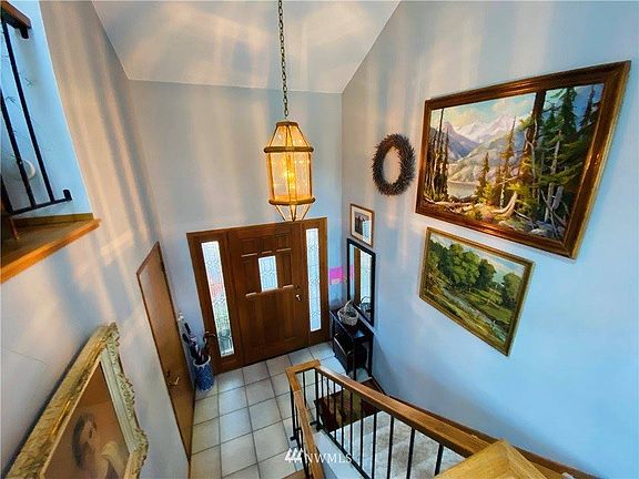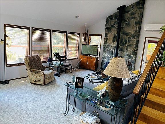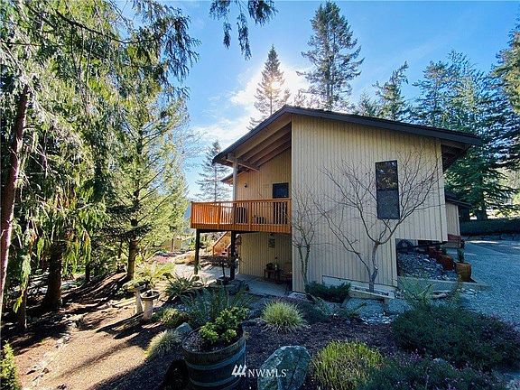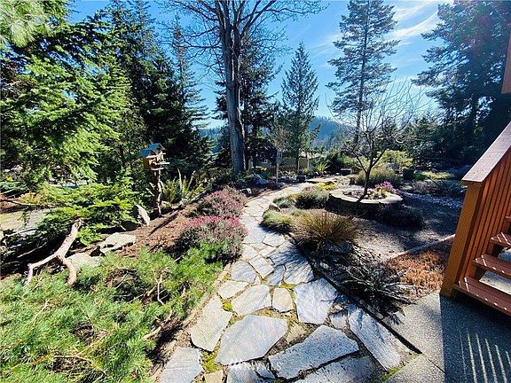 Spacious beautiful and clean home surrounded by mature landscaping, rock containing wall and full side to side large deck. Split entry, includes two car garage. Upper floor includes living room, dining room and kitchen with pantry, master bedroom and master bathroom. Split level office space above living room. Lower level includes large family room with sliding glass door to a covered patio, and beautiful landscaping where you can watch your squirrels and humming birds year round. Two additional bedrooms, large under the stairs storage and hot water tank, laundry room with outdoor access and an additional full bathroom. Shelter Bay Community offers 9 hole golf, tennis courts, swimming pool, parks, beach and a beautiful marina.