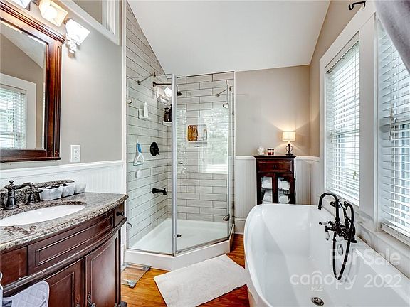 This well-kept 5 BDRM, 2.5 BATH, 3 living, bungalow (The McEver House) c.1906 (previously owned by coach McEver, head of Davidson Football '40s) has style & charm. The home sits on a .38 acre lot & can be subdivided. The house has been remodeled & updated from 2006 to present. Features include all new kitchen. Two bedrooms renovated down to studs & closets added. Original wood floors refinished w/ additional wood floors added. New HVAC ductwork, cold air returns & vents added for max unit efficiency. BiBS insulation added throughout home and attic. foundation, plumbing lines and electric wiring and panel boxes all replaced. The addition (mother in law quarters) from the 1940's was gutted to studs & reconfigured w/ sunroom, laundry, Master Bedroom & bath w/ deep soaking tub & a corner shower & central HVAC. Entire home has Alside double-hung windows (lifetime warranty) A 25-Year Roof installed (old roof removed & new roof decking added) in 2009. *SEE "ADDITIONAL FEATURES & UPGRADES"