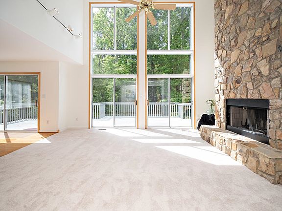 Welcome to the highly sought-after neighborhood of Cambridge at Regency, where your dream home awaits! This exceptional property features five bedrooms and three and a half bathrooms. The highlight of this home is undoubtedly the breathtaking view of the serene wooded backyard, visible through the expansive two-story windows in the living room. Unwind on the spacious deck or the inviting lower level patio, perfect for hosting indoor/outdoor gatherings with its multiple sliders. First-floor primary suite provides privacy and convenience, ensuring a retreat-like experience. A striking two-story stone fireplace becomes the focal point of the living space, emanating warmth and leaving a lasting impression on your guests. The interior has new carpet on the main two floors and has been freshly painted, lending a modern and refreshed ambiance. You'll be delighted to discover the expansive lower level, offering ample room for various activities and unlimited possibilities. The lower level bedrooms could easily be transformed into a home office, workout room, workshop, or anything else your lifestyle demands.Stunning home!