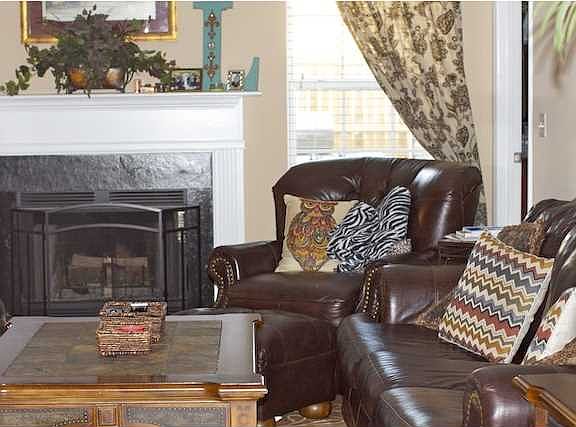 Let's take a look: Architectural Style with brick accent Elevation, Wood Burning Fireplace, Vaulted or Cathedral Ceilings, Trey Ceiling Master Bedroom, Luxury Bath w/Jetted Tub & Sep Shower, Dual Vanity in Master Bath, Elongated Toilet Bowls, Recessed Lighting, Ceiling Fan pre-wires in Bedrooms, wood living room and foyer, ceramic tile kitchen, Smooth Top range, Built-In Microwave, Ceiling Fans in Living Room and Master Bedroom, Insulated and wind loaded Garage Door, Solid Surface Counter Tops, Plantation Blinds, Upgraded Kitchen Cabinets, Beautiful finished FROG with Separate air conditioning upstairs, privacy wood fence. If square footage is important - MEASURE!!