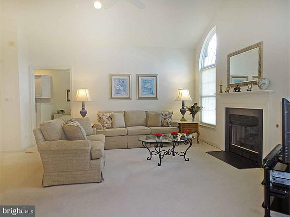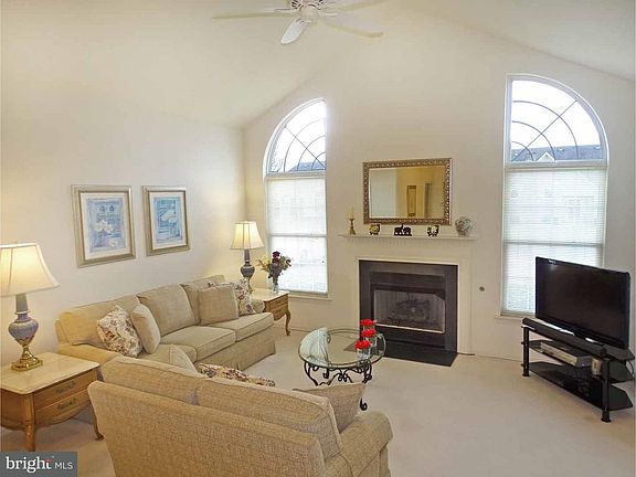 Welcome to this beautiful Mulberry Villa quad located in the gated Flowers Mill 55+ community. This sun drenched home features a covered entry into foyer with wood floor and coat closet. The living room and dining room is an open area complete with cathedral ceilings. The gas fireplace is the center focus of the living area surrounded by floor to ceiling windows. The updated kitchen features cabinets, granite counters, subway tile back splash, pantry and gas range. 5 foot windows make the breakfast nook bright and airy. The main bedroom has a tray ceiling with recessed lighting, ceiling fan, walk in closet and private bath with shower stall. The main floor of the villa has a second bedroom currently used as an office, a full hall bath and the optional sun room off the foyer. The spacious laundry room is located off the kitchen with access to the two car garage and features a sink, washer, dryer and coat closet. The second floor features large loft or third bath with closet. A third full bath could be added to the space easily. This home is clean and lovingly maintained by one owner, with a neutral palette, easy to move into and make your own. The community amenities include indoor and outdoor pools, clay-court tennis, bocce, health(exercise) center, pool tables, game rooms and loads of activities for active adults. This unit is a short walk to main attractions of the neighborhood. Close to St. Mary's hospital, Rt 1 and Rt 95, grocery store, drug store and eateries. Come see this rarely offered model today!