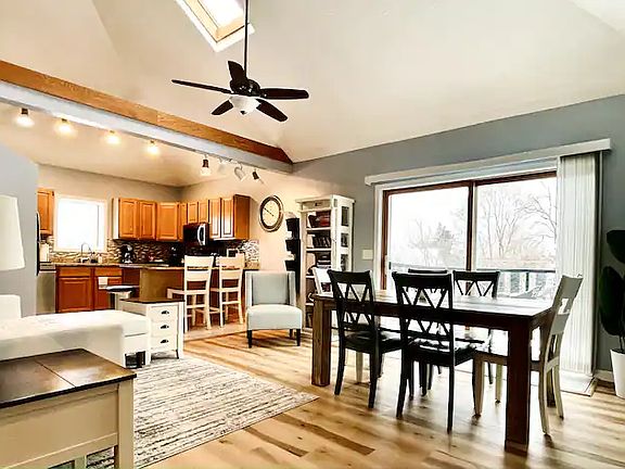 The Harbor House Loft is the perfect Northern Michigan retreat located in beautiful downtown Boyne City. Whether you are boating and swimming on Lake Charlevoix, visiting Boyne's Social District for excellent restaurants and shops, enjoying a round of golf, or a day on the ski slopes consider this the perfect home base for your 'Up North' getaway. The space You will have full private access to our top floor apartment with two queen bedrooms, one full bathroom and a loft with a full-size sofa bed. This property can comfortably sleep 6 people. There is a fully equipped eat-in kitchen and spacious living room with glass doors leading to the terrace. We hope this space meets all your needs as your relaxing home away from home. Guest access Upper apartment [Apt A] is accessed via private entrance on the State Street side of the house with coded electric key pad. Shared spaces with lower apartment [Apt B]: - Parking in driveway - Front Porch seating Other things to note The Harbor House is pet friendly! We allow one dog and there is a pet fee at booking. The Harbor House has two units that are reserved separately. If you are interested in viewing our other listing please let us know! Looking for a mid term lease from March 1 - May 31? Traveling nurses, doctors, business! Laundry on-site. All utilities included and fully furnished. Close to Gaylord, Petoskey and More! Walk to downtown Boyne City.