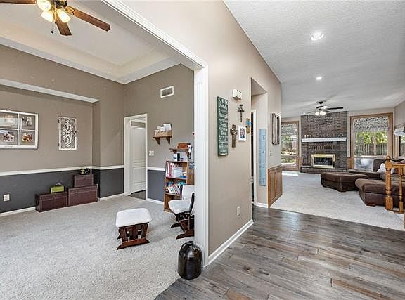 - Features: Built-in Features, Carpet, Ceiling Fan(s), Fireplace