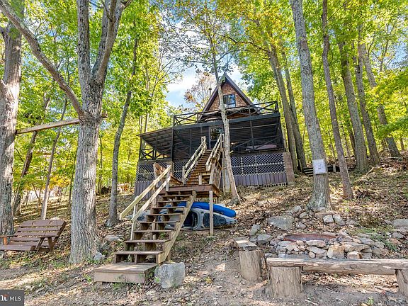 Welcome to 302 Tuscarora Trail, a charming A-frame tucked away on 1.18 acres of lakefront property. This home has views of both the water and surrounding mountains, giving you a peaceful retreat to enjoy year-round. Spend your mornings on the screened-in porch, or gather around the fireplace on cool evenings. A ductless mini-split provides comfort in every season, making this a great option for either a weekend getaway or a full-time residence. Located just 15 minutes from downtown Berkeley Springs—while still enjoying the quiet and beauty of lakeside living.