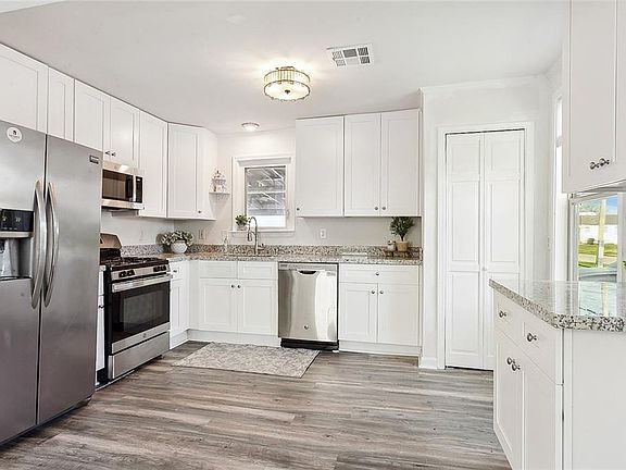 ADORABLE COTTAGE W/NEWLY RENOVATED KITCHEN INCLUDING NEW ROOF 2022; NEW WHITE CABINETS, GRANITE COUNTERTOPS, NEW LIGHT FIXTURES & CEILING FANS. NEW LAMINATE KITCHEN FLOORING, NEW STAINLESS GAS STOVE, STAINLESS BUILT IN MICROWAVE, STAINLESS FRIDGE AND DISHWASHER INCLUDED. NEWLY RENOVATED BONUS ROOM OR OFFICE WITH SEPARATE EXTERIOR ENTRANCE. MOST WINDOWS REPLACED WITH DOUBLE INSULATED WINDOWS, ADDED INSULATION, NEWER HOT WATER HEATER. REAL HARDWOOD FLOORING IN DEN, BEDROOMS. NO CARPET. LARGE COVERED OUTDOOR AREA, PERFECT FOR ENTERTAINING. LARGE STORAGE SHED. NEVER FLOODED. FLOOD ZONE X, TERMITE CONTRACT.