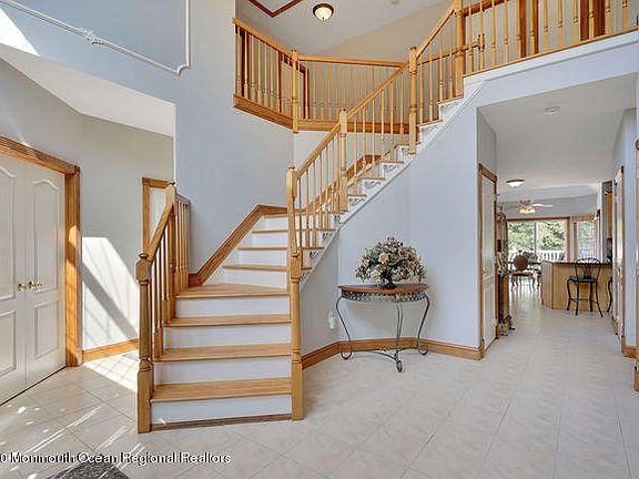 Nestled within an ATTRACTIVE neighborhood in Freehold Township, this EXPANSIVE 4 BEDROOM, 4 FULL BATH home features both PRIVACY and CONVENIENCE to major roads, parks and other local amenities. After strolling up the winding CUSTOM PAVER pathway, you will enter the home to a GORGEOUS 2-STORY FOYER emphasized by beautiful OAK STAIRS to the second floor. Lovely CERAMIC FLOORS continue into the LARGE EAT-IN KITCHEN complete with GRANITE COUNTERS, NEW STAINLESS STEEL APPLIANCES, DOUBLE OVEN, CENTER ISLAND, 2 SEPARATE COOKTOPS and a CUSTOM BACKSPLASH.