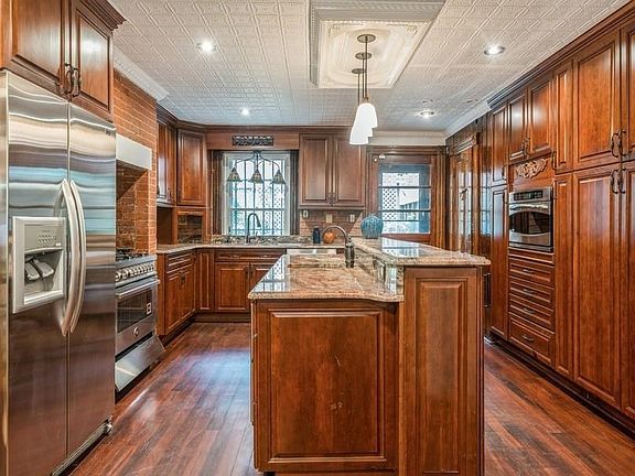 Welcome to this beautiful single family brownstone home located on the quaint block of Varick St, minutes away from the Van Vorst Park sector of Downtown, Jersey City. Composing a total of four floors of livable space, this 2,440 sqft, 5 bedroom/2.5 bath home is full of old-charm, modern touches, and original restored finishes. Step inside the home onto the living room space complete with floor to ceiling windows allowing the natural light to seep through, high ceilings, and a custom-built decorative fireplace. Towards the back of the home, you have an additional room, with original pocket doors, a great space to use as an additional bedroom or a family room. Head down the stairs onto the parlor level into your dream kitchen and dining room floor, perfect for entertaining guests. Step into your kitchen and soak in the great space complete with state-of-the-art appliances, and original wood cabinets, not to mention an abundance of cabinet space for everything you need. A beautiful island with an additional sink and perched eating space is a great contribution to this lovely kitchen. A stunning brick wall overlooking the oven completes the space. Directly off the kitchen is access to a private paved backyard. The top two floors encompass four great size rooms and two full baths. The unique bathrooms are complete with claw-foot tubs perfect for a soaking bath after a long day and freshened up stand up showers and floating vanities. Bedrooms are complete with great size closets composed of mahogany doors, and oversized windows allowing the sunlight to shine through. Full of well-kept original finishes from detailed crown moldings to stained glass windows, this stunning home is a MUST SEE!
