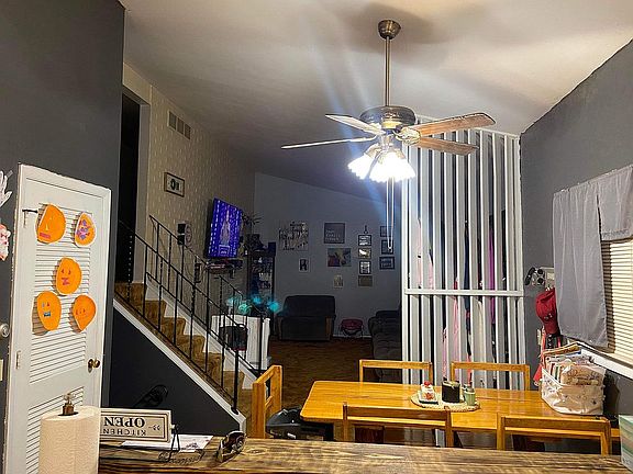 This is a great house for a family! Plenty of room inside and a big backyard and patio! It’s a tri level house with technically 3 bedrooms (there’s 4 right now) 1.5 bathrooms, a laundry room, single car garage, big crawl space. The middle section is the kitchen, dining room and living room. Downstairs is a very big “room” at the moment is the master bedroom but it could be used as another living area, toy room, game room, etc. and the half bathroom and laundry room is down there as well. Upstairs is 3 bedrooms and the full bathroom.