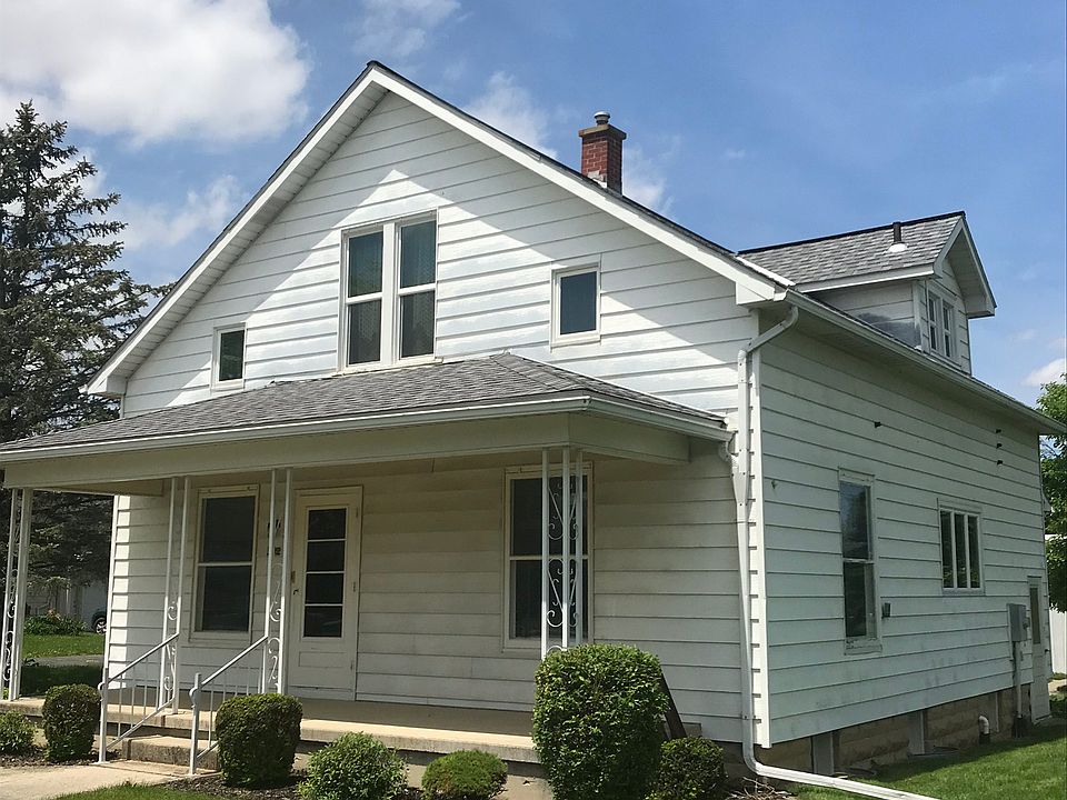 Three large bedrooms, one down and 2 up. Four large closets flank both upstairs bedrooms providing lots of storage space. Large kitchen with nice dinette table area. Two front rooms with double pocket door divider provides private and open area entertainment living options. New roof installed in 2017. New upstairs windows in 2009. Other upgrades that have been done for you includes 200 amp electrical service with wiring upgrades, new copper plumbing, insulation upgrades and much more. Gas furnace with central air provides economical comfort levels. Dry basement throughout all the recent heavy rain. Large welcoming front porch. 24’x30’ modern garage with two 9’x7’ overhead doors and service door. Newer concrete driveway and sidewalk provides lots of off street parking and a safe place for kids, bikes, toys, games, etc. House is located in nice location on one half acre lot with plenty of room for a garden, pool, patio, kids play set or whatever you desire. You will want to see this place to see the possibilities you can do to make it your dream home.