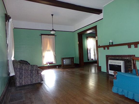 Older home with beautiful woodwork, 9' pocket doors at LR & DR, hardwood & wood floors, 3 fireplaces,claw foot tub, transom windows, some antique hanging light fixtures, sunporch/utility area, huge front porch. Your touch will make it shine!